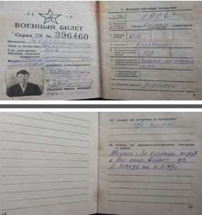 В то время на охотника брали опытных охотников и у кого были оленьи упряжки. Пушнина ценилась дорого, потому что за пушнину купили военные боеприпасы. Был особый план для добычи мягкого золота. Алексей Николаевич награжден медалью «За доблестный труд в Великой Отечественной войне» уд.Г-35429 от 5.2-1947 г. на стр.15 военного билета